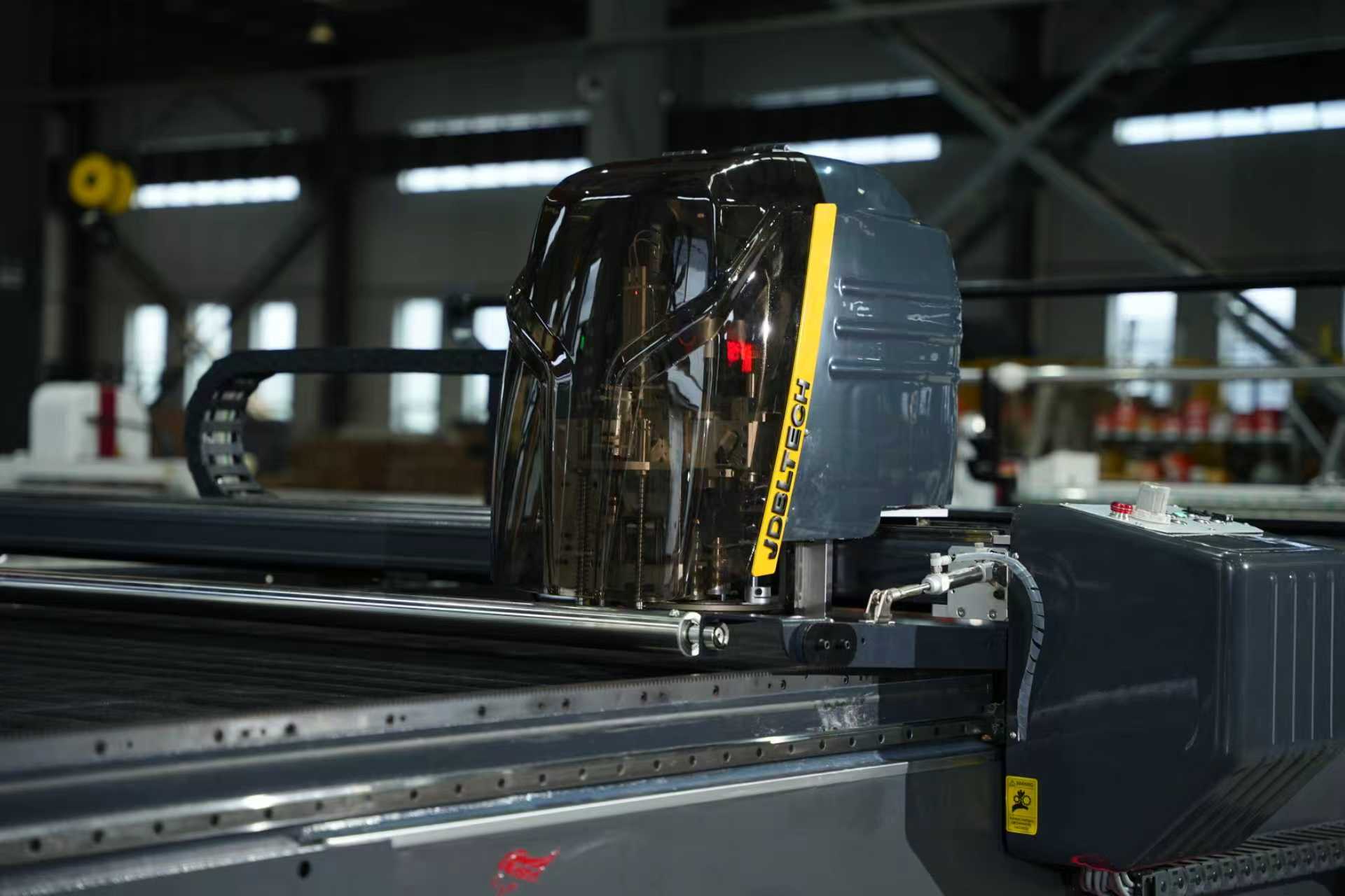 The machine head is made of integrated casting of aviation-grade aluminum. It has a stable structure and is equipped with a thick material non-stick cutting blade developed independently. It is widely applicable for cutting thick, hard, slippery, coated, waterproof, non-breathable, and easily stick-to-the-blade types of fabrics.