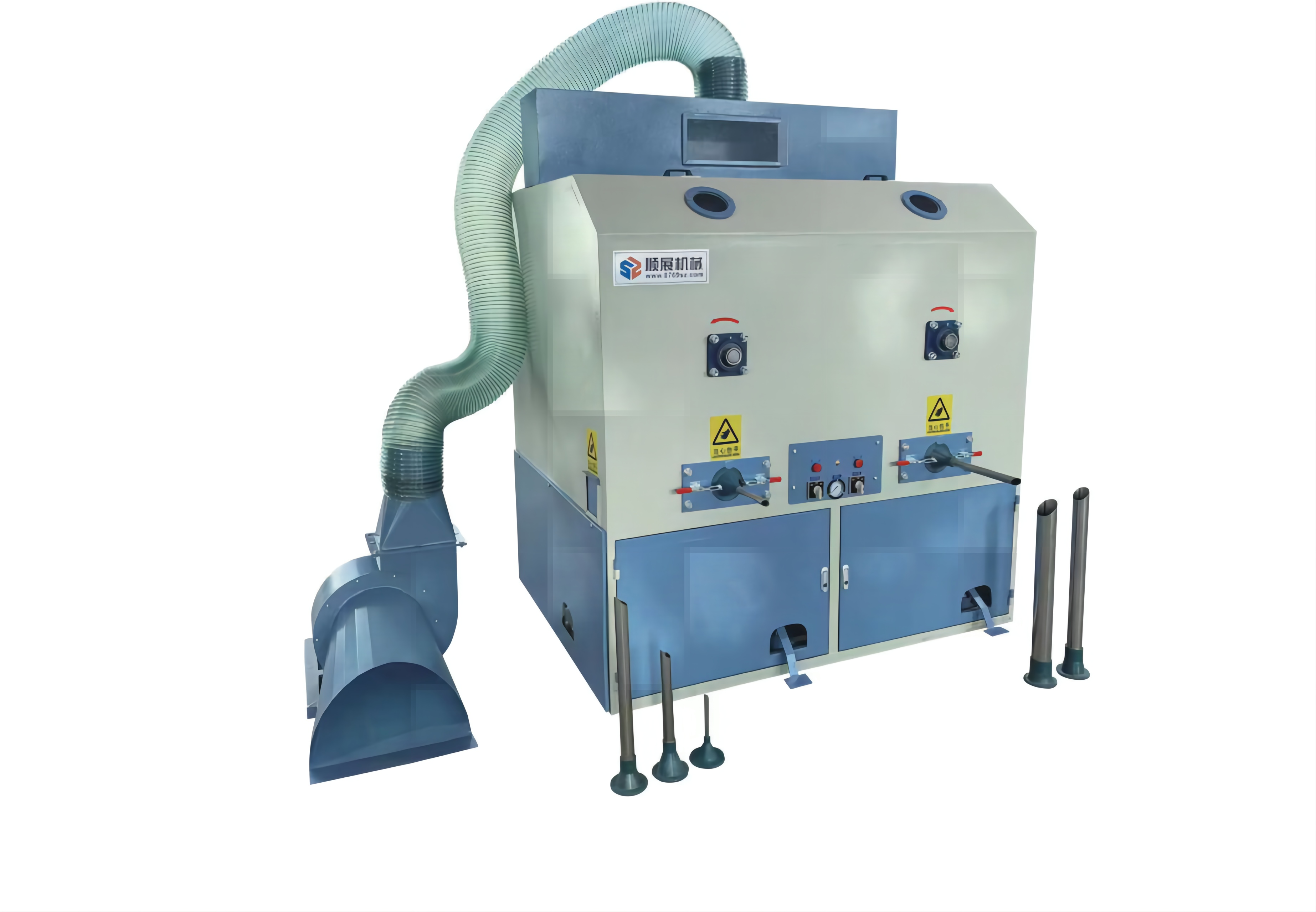 The motor is controlled by frequency converter, which makes the motor durable and electricity saving. The cotton outlet is specially designed to maximize the use of air pressure of the air compressor and save the air flow of the air compressor, so that the air compressor will not start frequently and play the power saving effect. Not only doll filling machine can fill doll plush toy, also it is suitable for thin pillow or cushion filling, as pillow or cushion stuffing machine , it mainly fill 7-15d long polyester fiber or short polyester fiber.